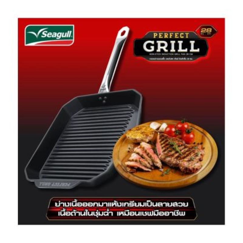Seagull กระทะย่างนอนสติ๊ก เพอร์เฟค กริลล์ อินดักชั่น ขนาด 28 ซม.